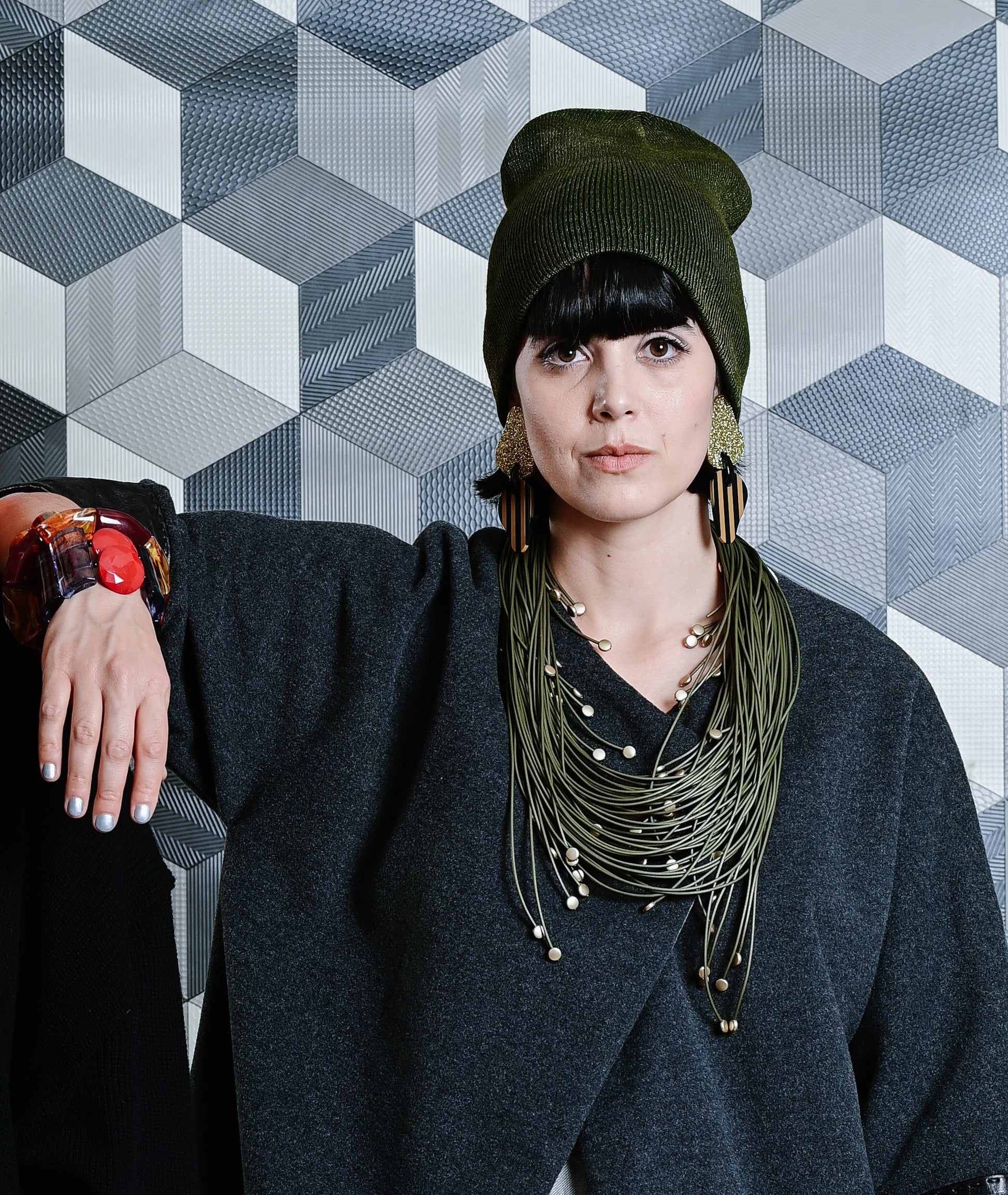 צבע: גומי ברונזה נוצץ עם חרוזי רזין זהב