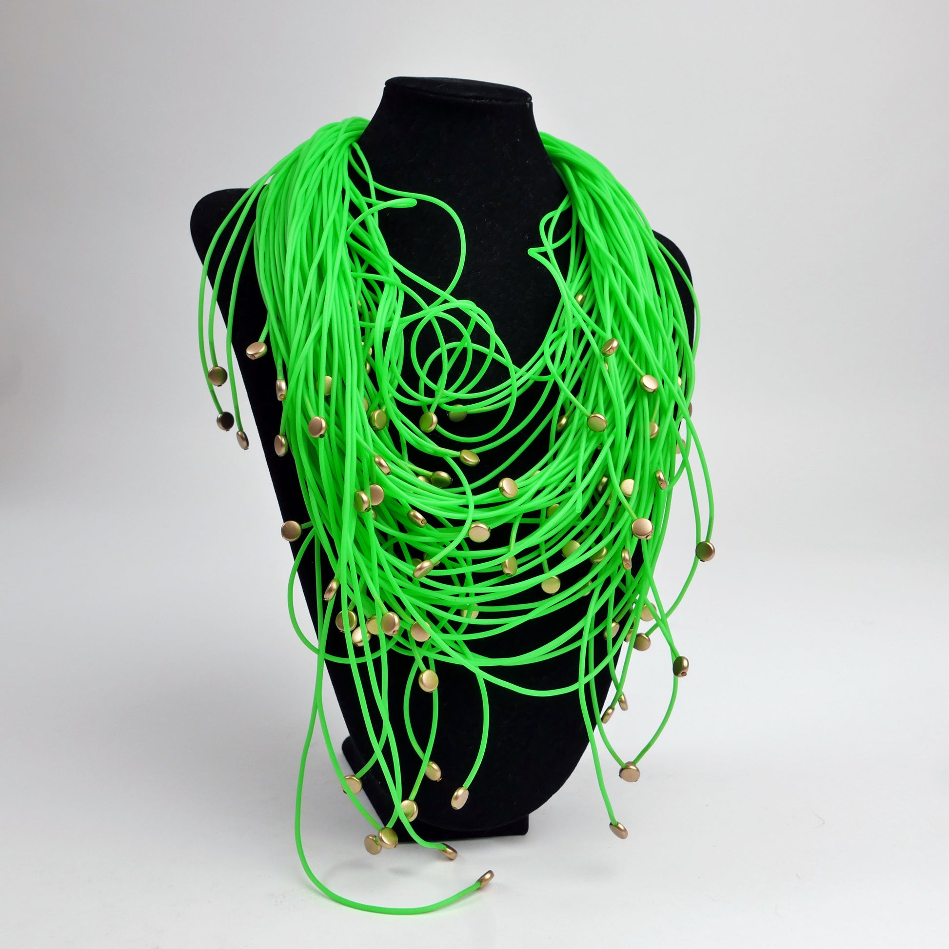 צבע: גומי ירוק ניאון עם חרוזי שרף זהובים