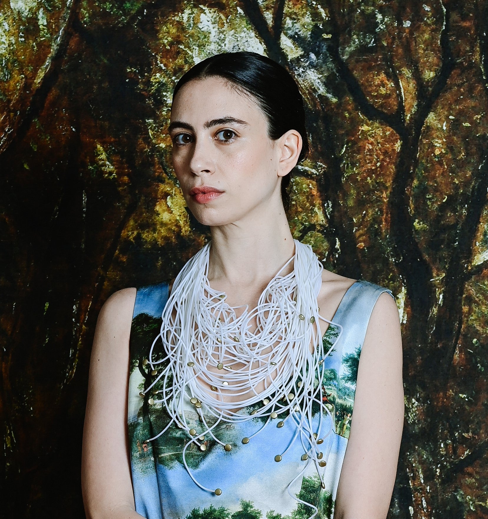 צבע: גומי לבן עם חרוזי שרף זהובים