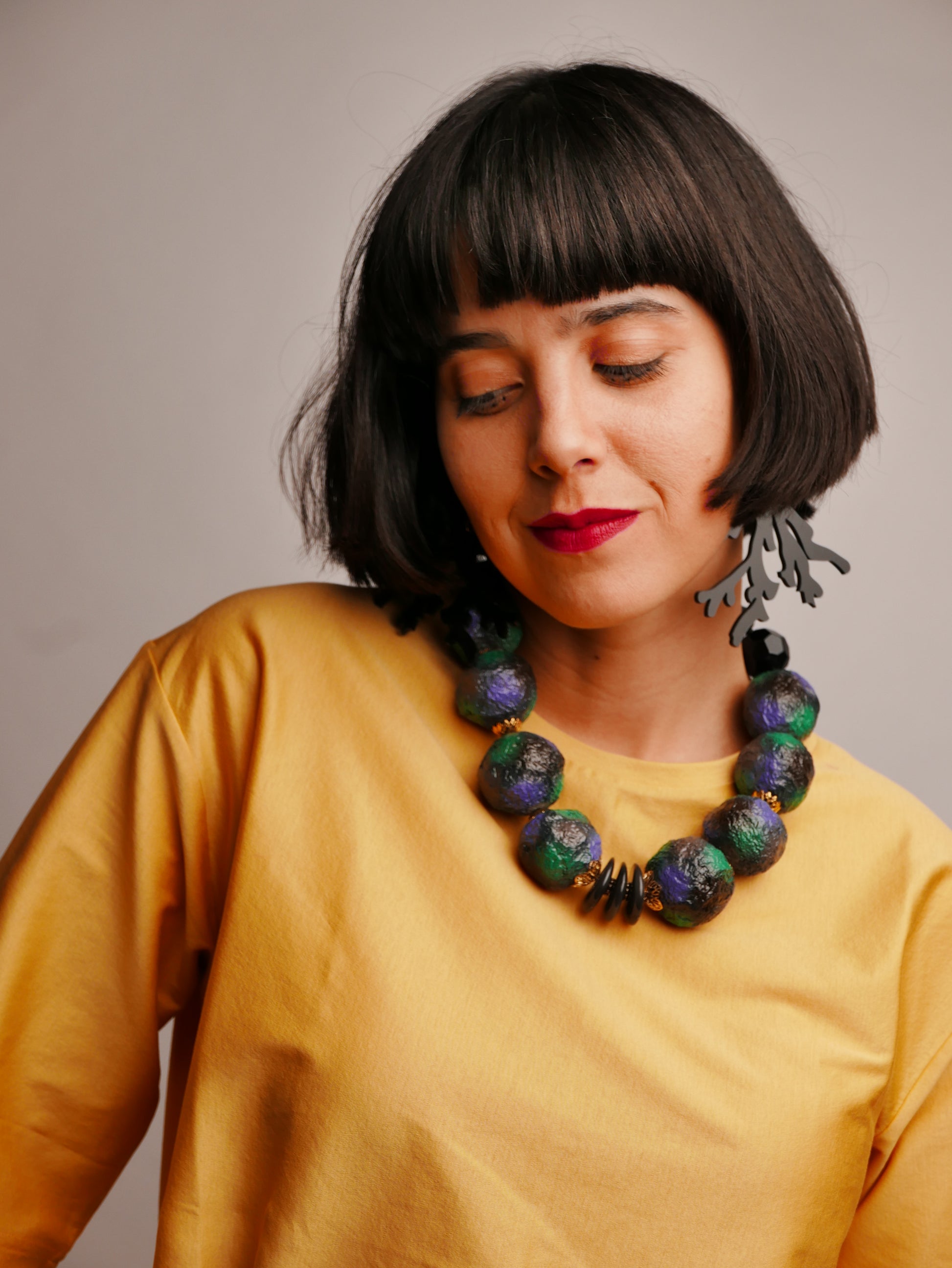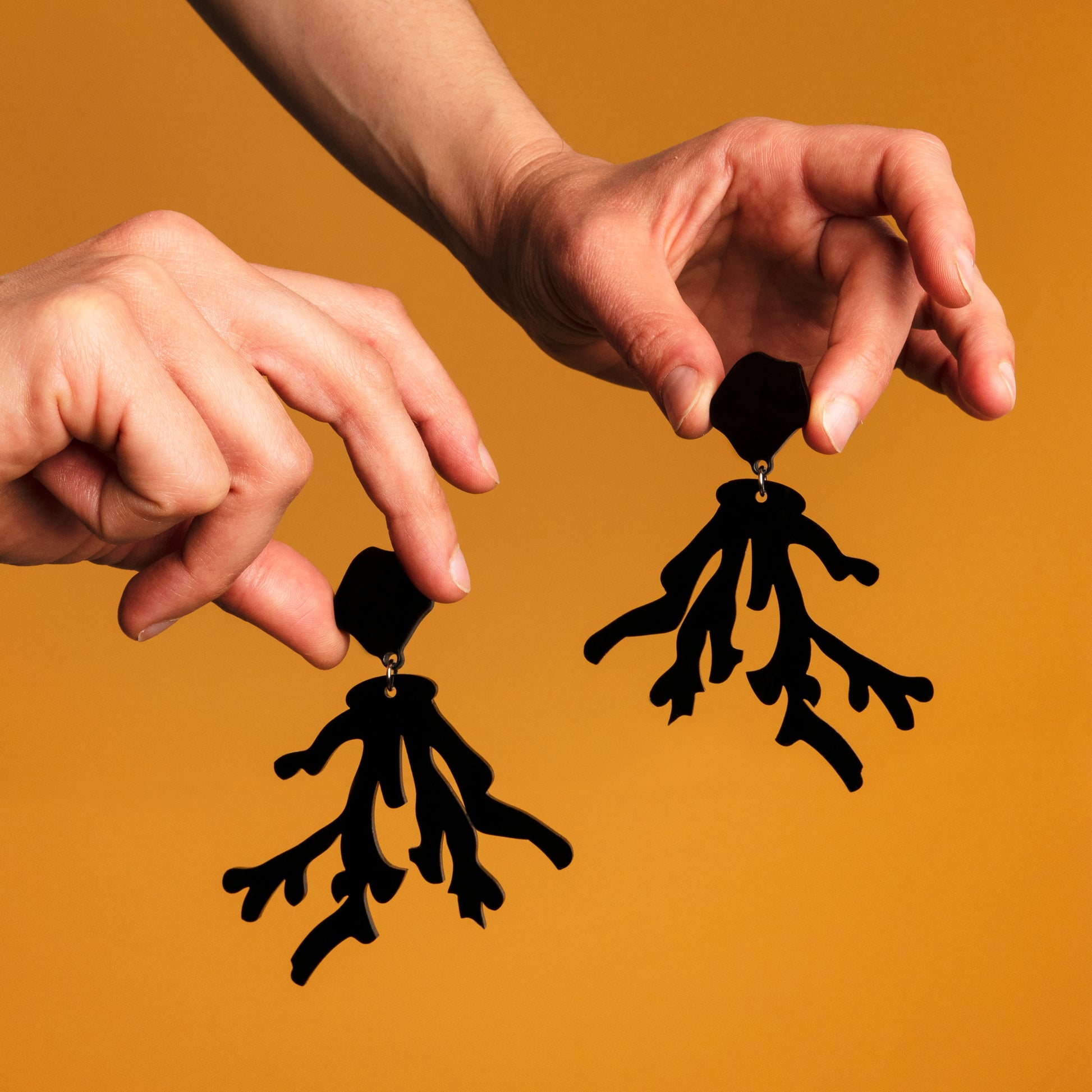 עגילי פאנקי ריף שחורים בשילוב חלק עליון בצורת אמורפי שחור.