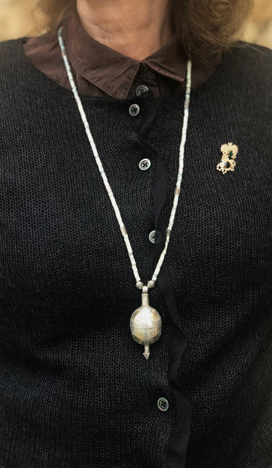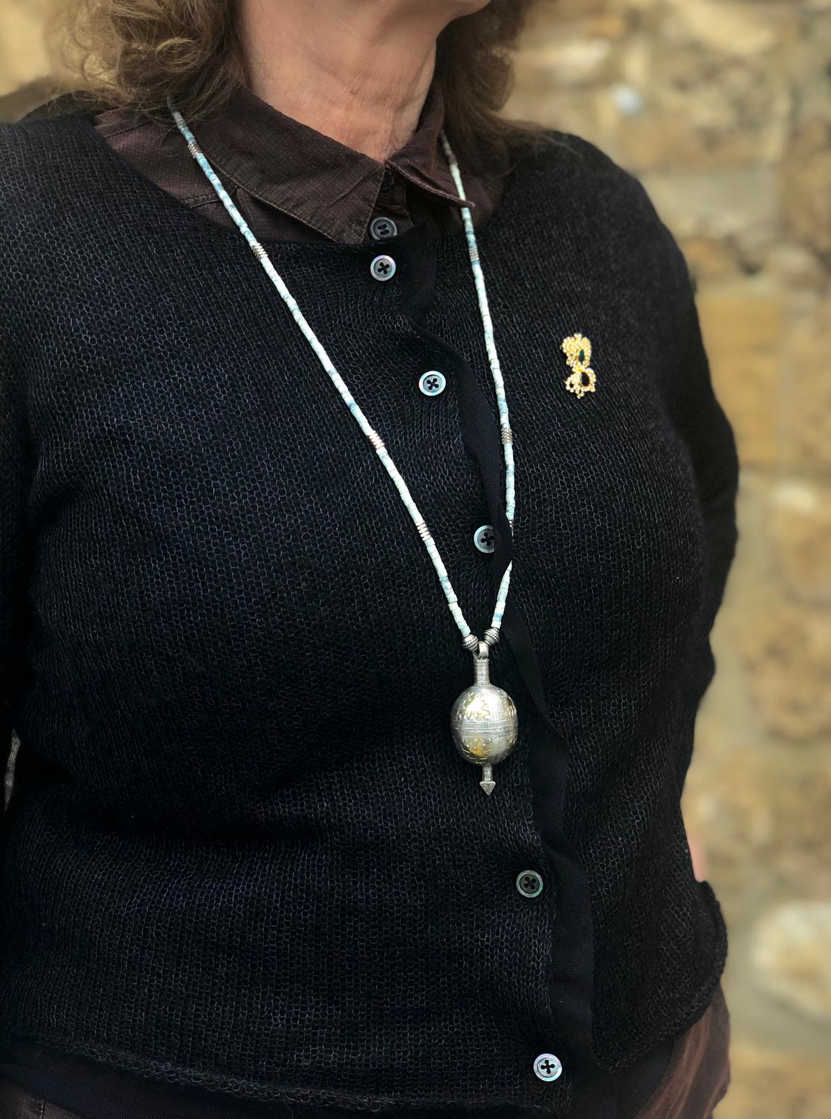 עדינה אך עוצמתית היא שרשרת הקמע המרוקאי, עשויה מחרוזי ג'ספר טורקיז בשילוב תליון קמע כסף מרוקאי.