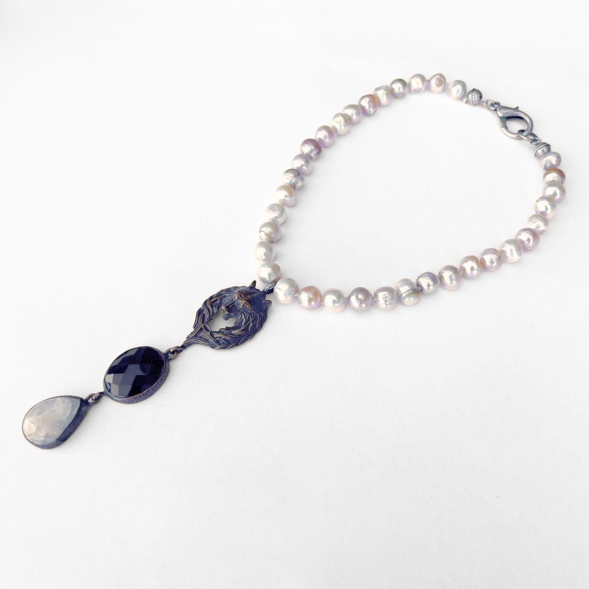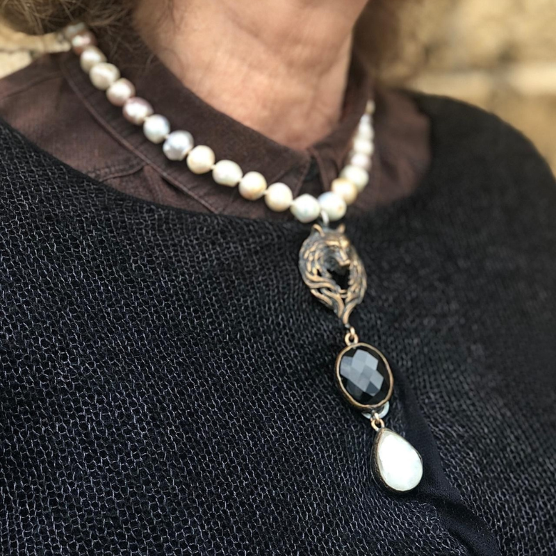שרשרת פנינים "זאב ירח" היא פריט ייחודי ויחיד במינו. עשויה משלושה תליונים המחוברים יחד: אבן זאב ברונזה בעבודת יד, אבן אוניקס גדולה בצורת אליפסה ואבן ירח בצורת טיפה, עשויים בעבודת יד על ידי אומנים מקומיים ממרכז אסיה. בשילוב עם פנינים מתורבתות אמיתיות במראה גולמי ולא מלוטש.
